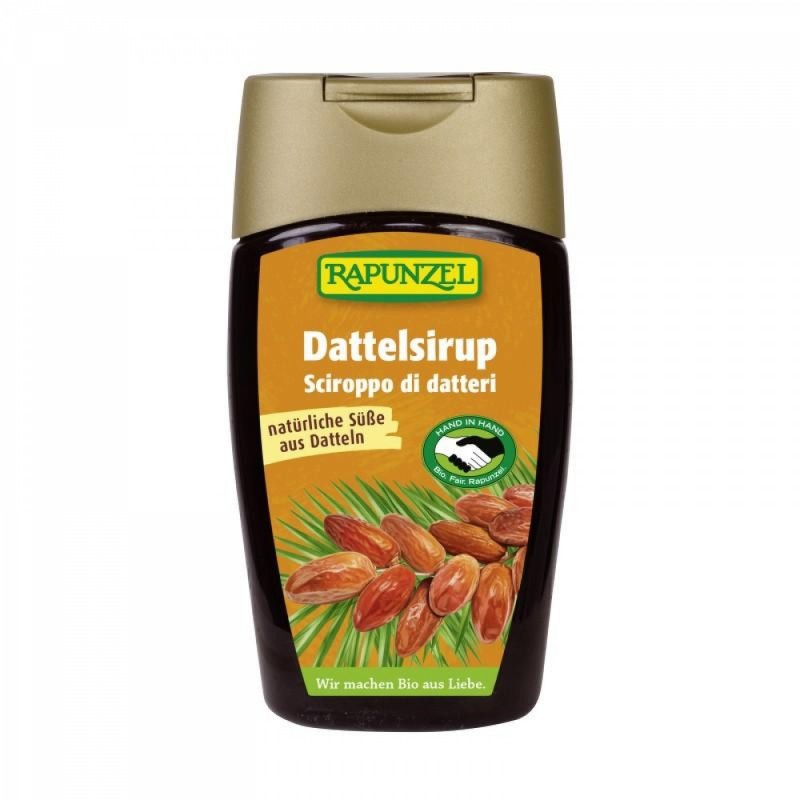 La dulzura natural de la fruta del dátil. El sirope de dátiles, trae nuevos sabores frutales en su cocina y postres no sólo ha edulcorantes y productos de panadería, sino también redondea perfectamente platos picantes. Las fechas son de comercio justo y provienen de Rapunzel MANO EN MANO.