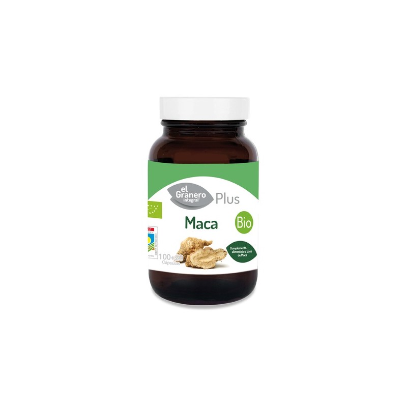 Maca Bio es un complemento alimenticio elaborado por El Granero Integral, que posee multivitaminas y minerales utilizadas como afrodisíacos, pues sus propiedades potencian el sistema inmune hormonal, previniendo afecciones ocasionadas por este tipo de deficiencias.