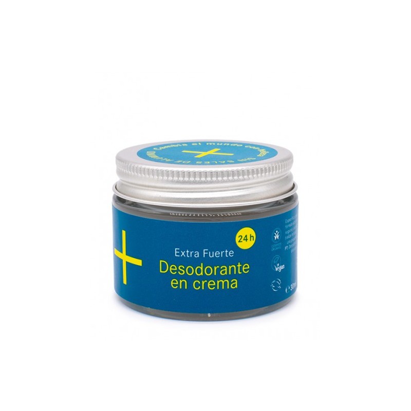 I+MLa crema desodorante Extra fuerte en frasco de cristal reutilizable, desodoriza durante 24 horas con una fórmula activa efectiva a base de coco, bicarbonato de sodio y zinc.