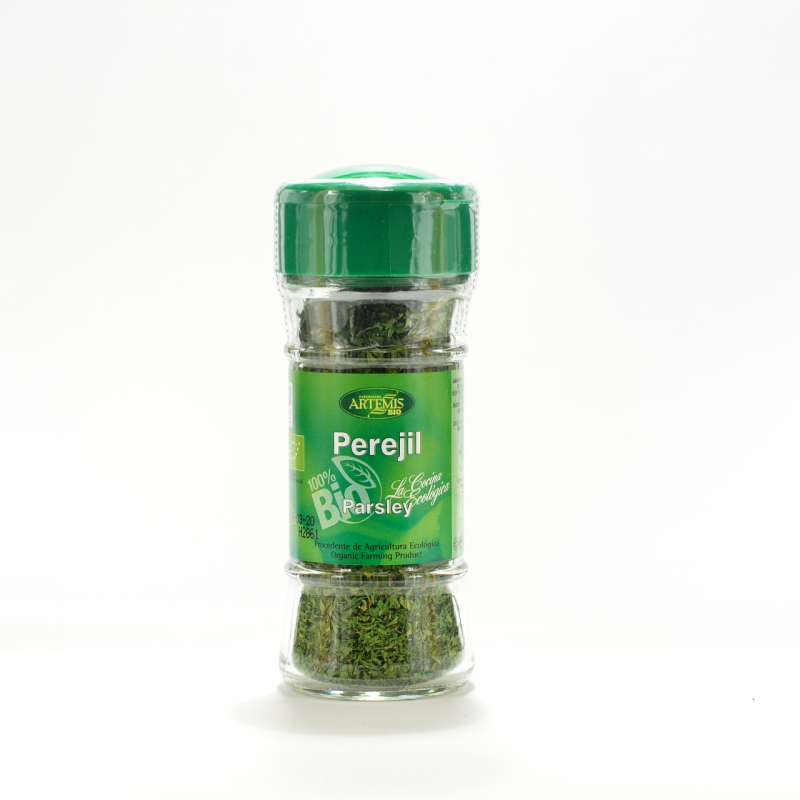Perejil en pequeñas hojitas, para dar sabor y color a las recetas. De color verde intenso. Es un condimento comodín para a guisos, verduras, champiñones, pescado, buñuelos, etc.