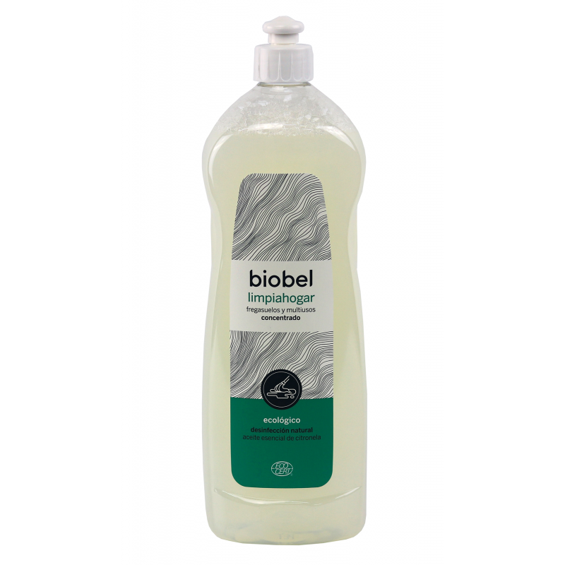 Limpiahogar concentrado Eco de Biobel es un potente y polivalente limpiador ecológico concentrado. Gracias a su cuidada y única formulación con alcohol vegetal desnaturalizado y aceite esencial de citronela, limpia en profundidad y aromatiza el hogar.