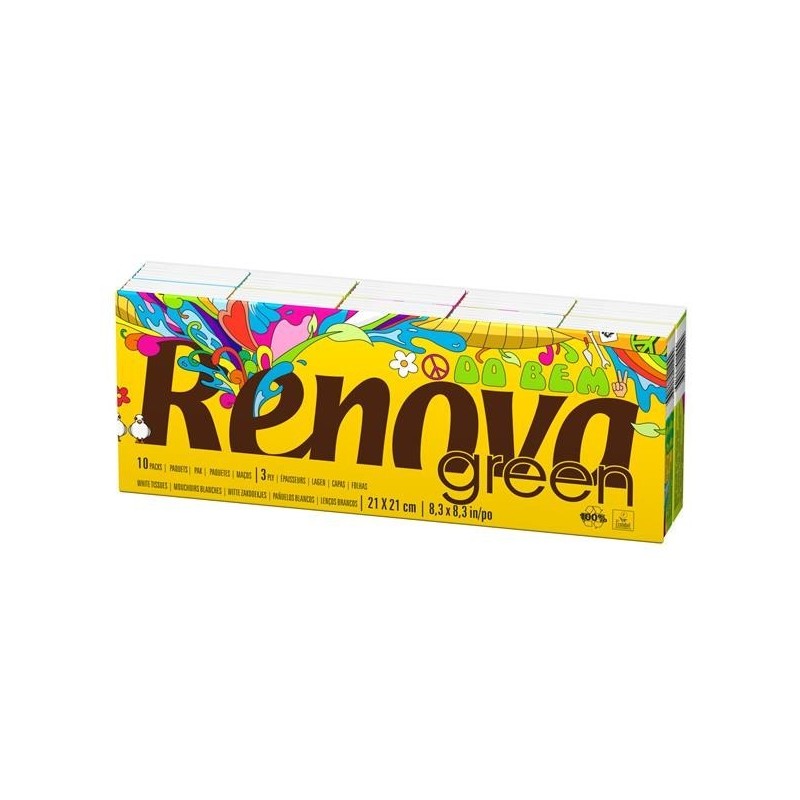PAÑUELOS RENOVA GREEN 10 PAQUETES DE 10 UNIDADES