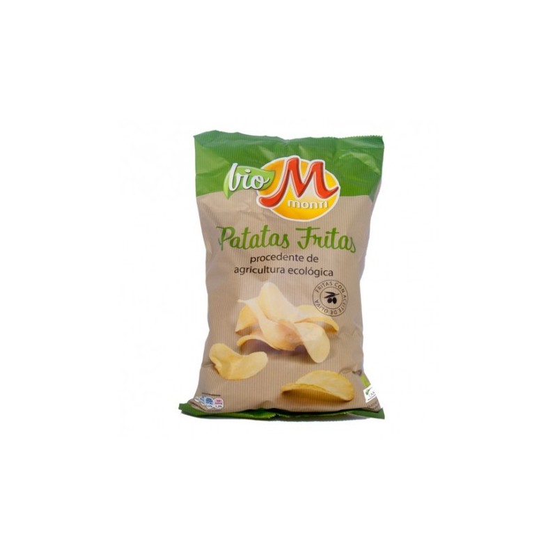 Ingredientes: patatas seleccionadas*, aceite de girasol*, aceite de oliva virgen extra* (10%) y sal marina. (*)=De cultivo ecológico.