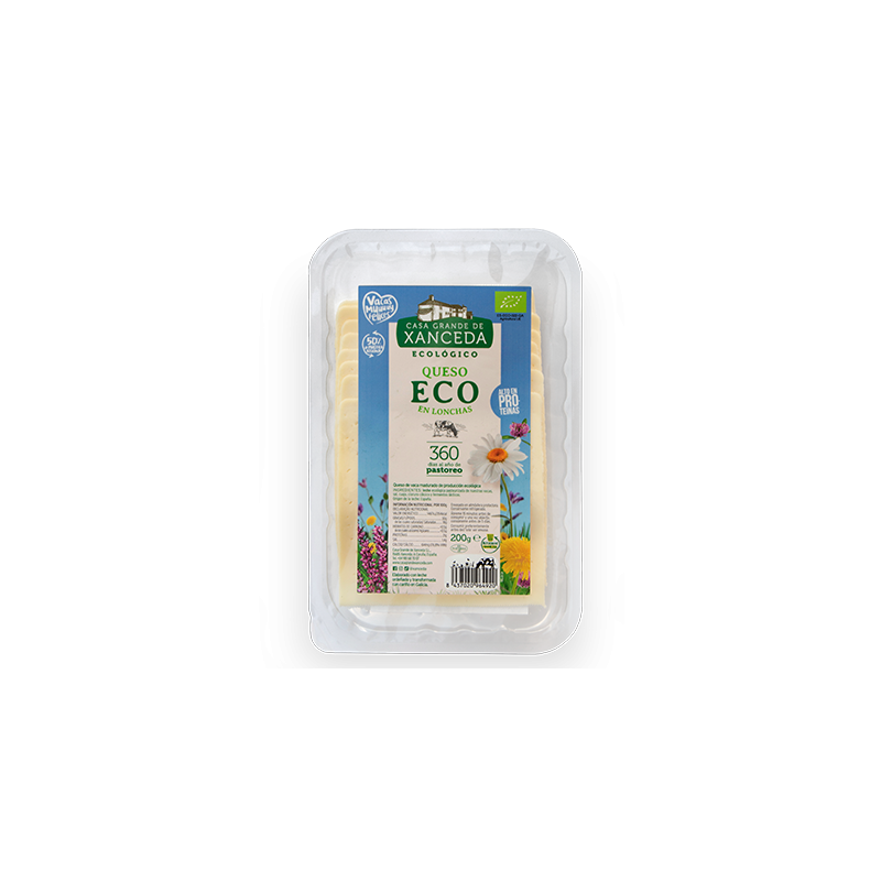 Nuestro queso ecológico en lonchas es muUuy tierno y cremoso. ¡Se deshace en la boca! Elaborado con leche de nuestras vacas que salen a pastar todos los días a prados libres de herbicidas y pesticidas. ¡Y eso, se nota! Por eso nuestro queso tiene un color dorado característico de la leche de pastoreo. Además, es alto en proteínas ¡100% naturales de la leche!