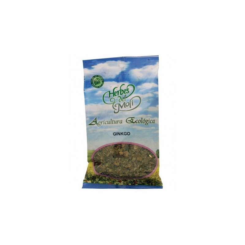 Bolsa con 40 gr de Hoja de Ginkgo Biloba. Elaborado por Herbes del Molí. Venta en herbolarios, ecotiendas y parafarmacias.
